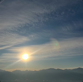 富士山を見ながら、朝日をみて